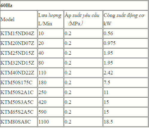 | Model | Lưu lượng L/Min |
