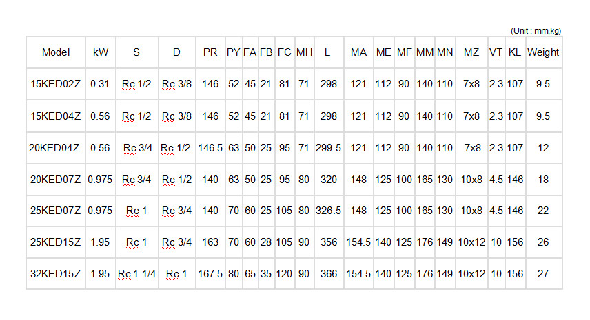 50Hz/ 60Hz, 100V -230V, 0.3 to 0.55kW |